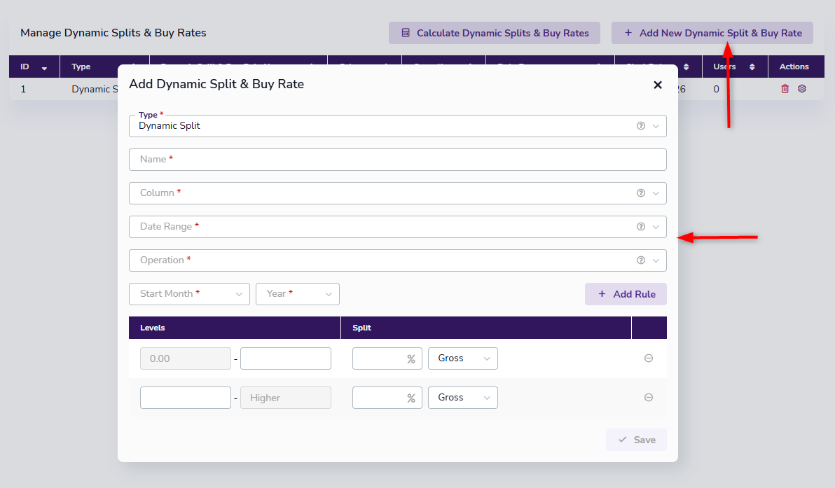 From the Dynamic Splits page, click Add New Dynamic Split & Buy Rate.