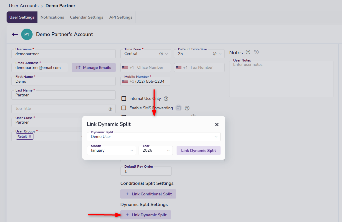 You can also assign a Dynamic Split or Buy Rate directly from the user settings page.