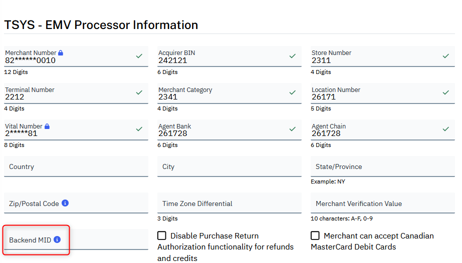 Some processors (such as TSYS) require a Backend MID to link correctly in the portal.