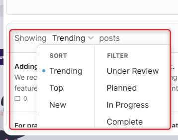 You can refine the list of posts by selecting one of the available categories in the feedback menu.