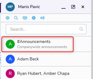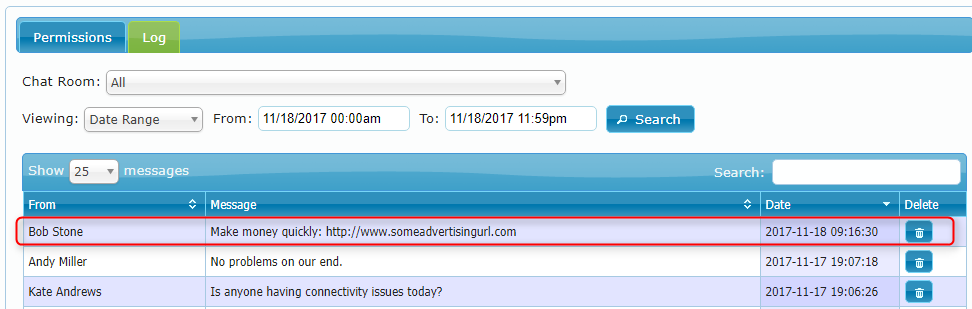💡 Type a user or topic name into the Chat Room field to quickly filter results.