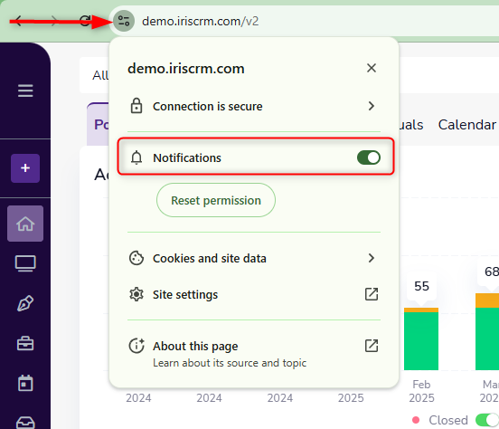 CRM Chat can show desktop notifications even when Merchant Central is not the active browser tab.