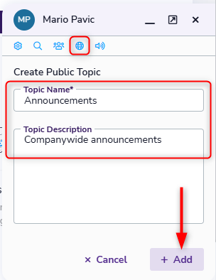 Public topics allow all ISOs using the CRM to participate in shared discussions. To create one: