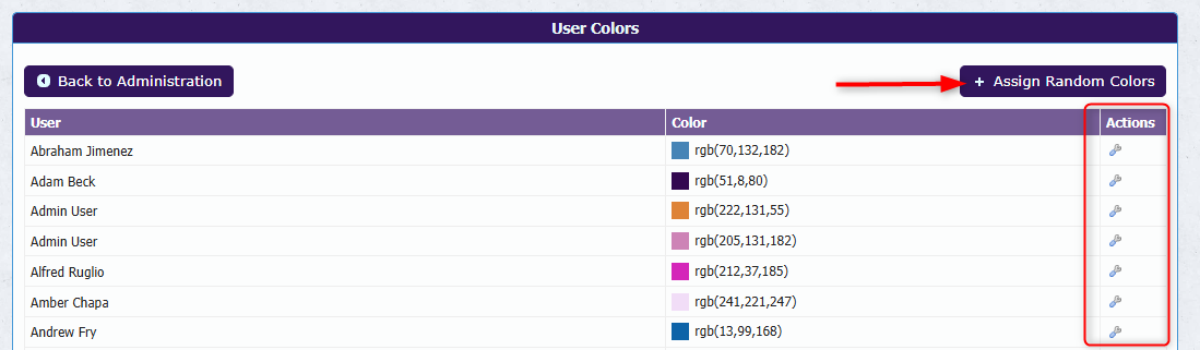 - To assign colors to all users who do not already have one, click Assign Random Colors.