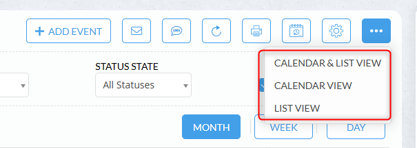 Switch between Calendar View, List View, or Calendar & List View