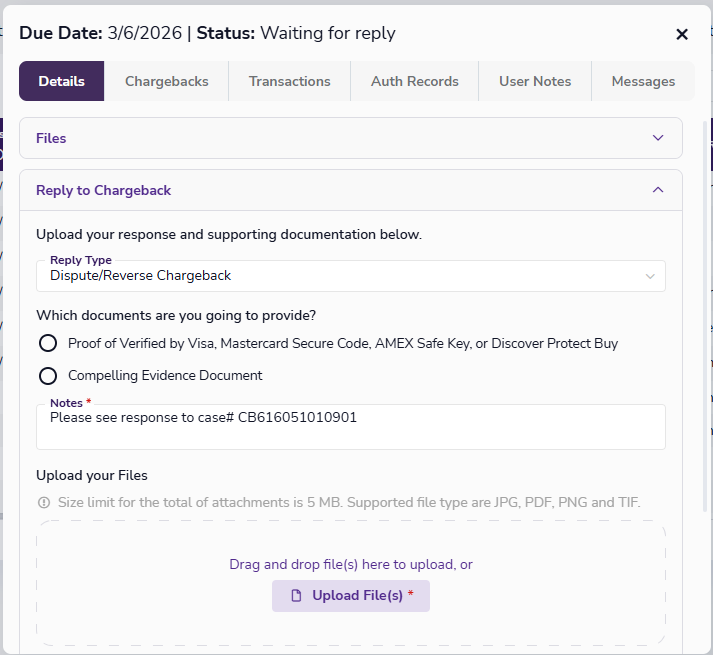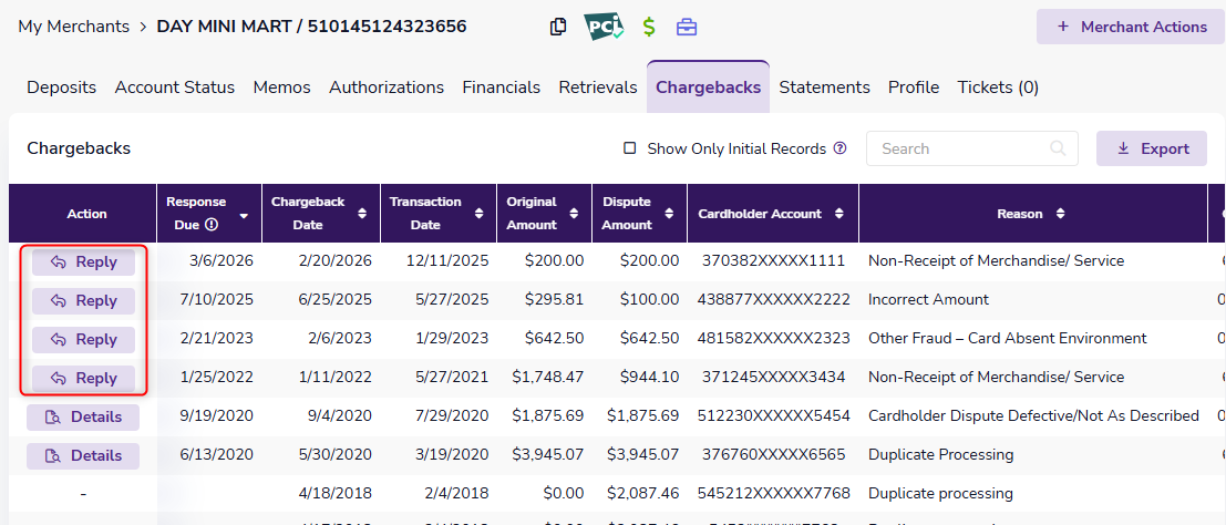 - Chargeback reply options