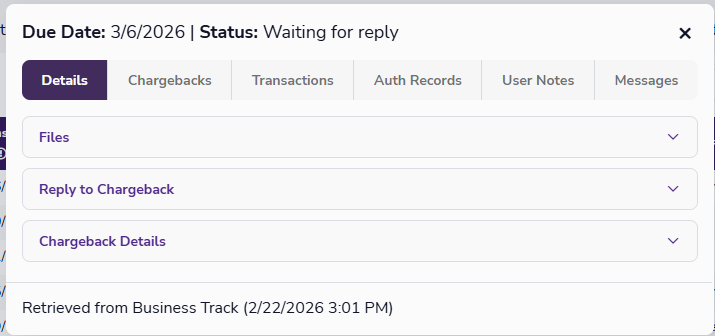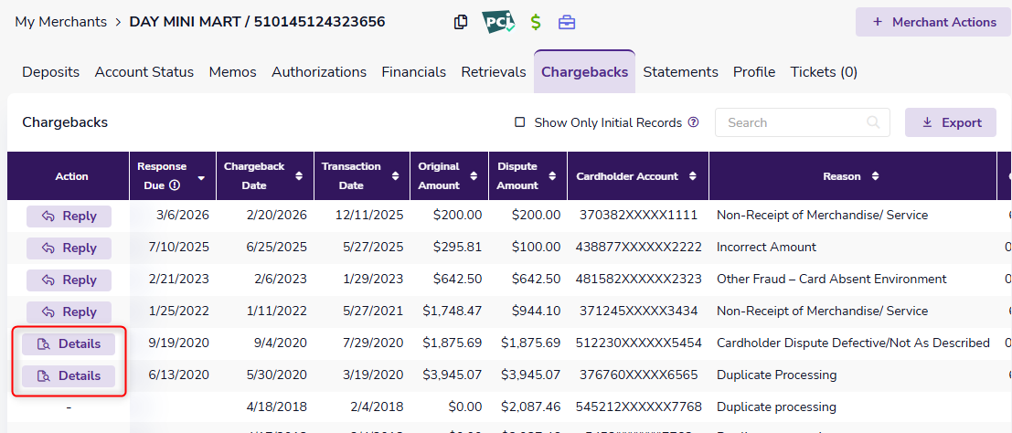 Chargeback details