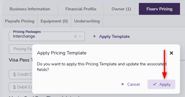 Once added, users can choose a pricing template directly on lead records and click Apply to populate values.