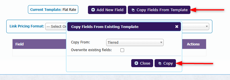💡To copy values from an existing pricing template, click Copy Fields From Template, select the source template, and click Copy.